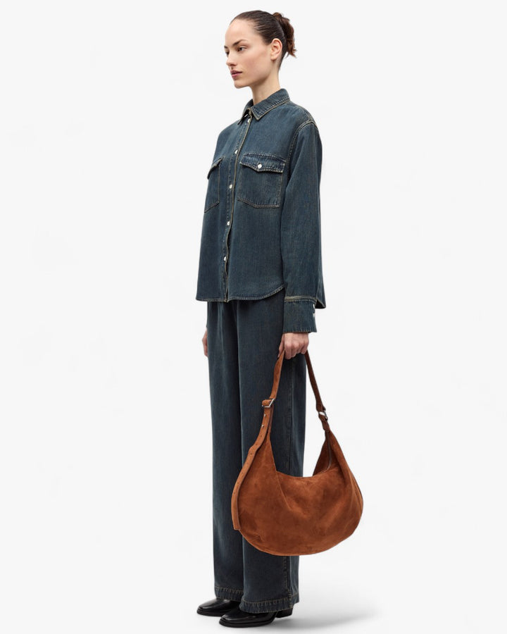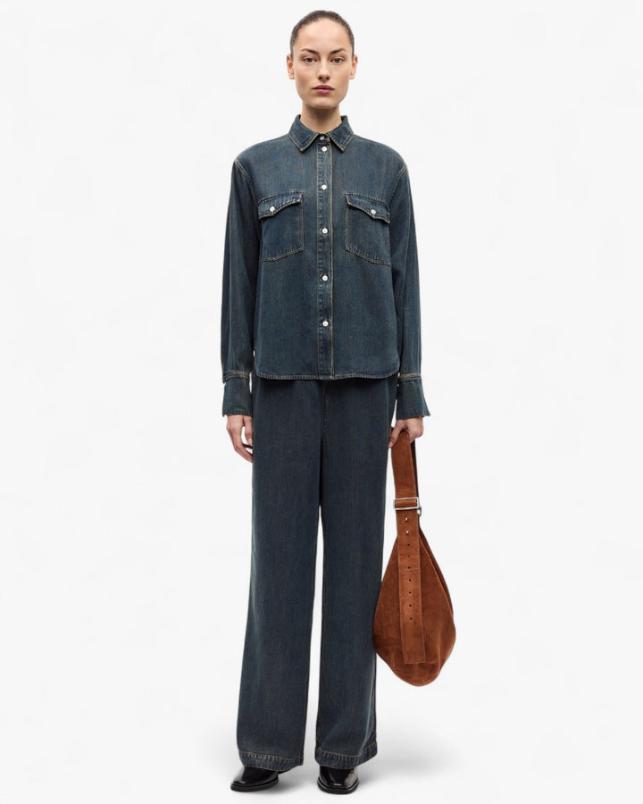 Samsoe Samsoe Spodnie Satopiarya Jeansowe to nowoczesna odsłona denimu, która łączy wygodę z minimalistycznym stylem. Wykonane z wysokiej jakości bawełny o lekko spranym, ciemnoniebieskim odcieniu, mają prostą, szeroką nogawkę, która nadaje im swobodnego, streetwearowego charakteru. Elastyczny pas ze sznurkiem do regulacji zapewnia idealne dopasowanie i komfort noszenia, a brak zbędnych przeszyć i zdobień podkreśla ich czystą, uniwersalną formę. To model, który świetnie odnajdzie się w codziennych stylizacjach – od casualowych zestawów z T-shirtem po bardziej wyrafinowane looki z koszulą czy marynarką. Satopiarya to denim, w którym wygoda spotyka się z ponadczasowym stylem.